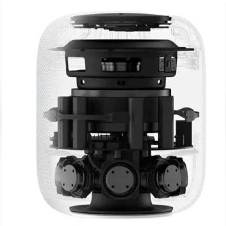 HomePod имеет мощность в 50 Вт, что позволяет достичь глубоких басов, ясных высоких и чистых средних частот. Благодаря 8 встроенным динамикам вы получите полный объемный звук, который наполняет комнату кристально чистыми мелодиями.