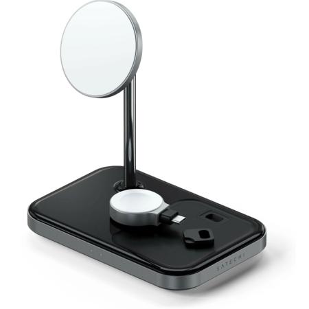 Обогатите свое поле зрения и проведите беспроводную революцию с нашей новейшей звездой - Зарядным Устройством-Подставкой Satechi Magnetic 3-in-1 Wireless Charging Stand в роскошном космическом сером цвете.