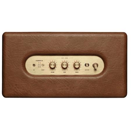 Дизайн в классическом стиле Marshall добавляет шик и уникальность этому устройству. Шоколадный коричневый цвет корпуса и золотистые детали делают его привлекательным и оригинальным. Он блестяще вписывается в любой интерьер, придавая ему особое обаяние и шарм.